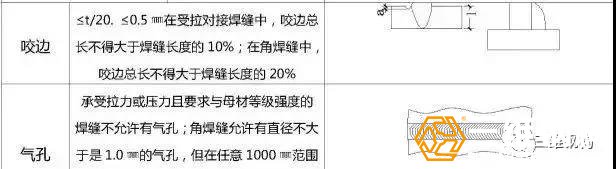 焊縫外觀檢驗允許偏差或質(zhì)量標(biāo)準(zhǔn)見表
