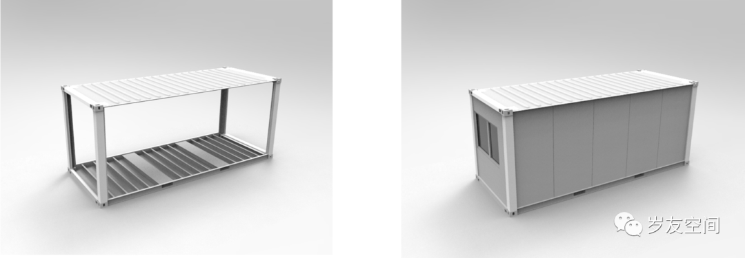 集裝箱頂部使用卷材防水,外加鋁板、彩鋼板、防腐木露臺等頂部處理。