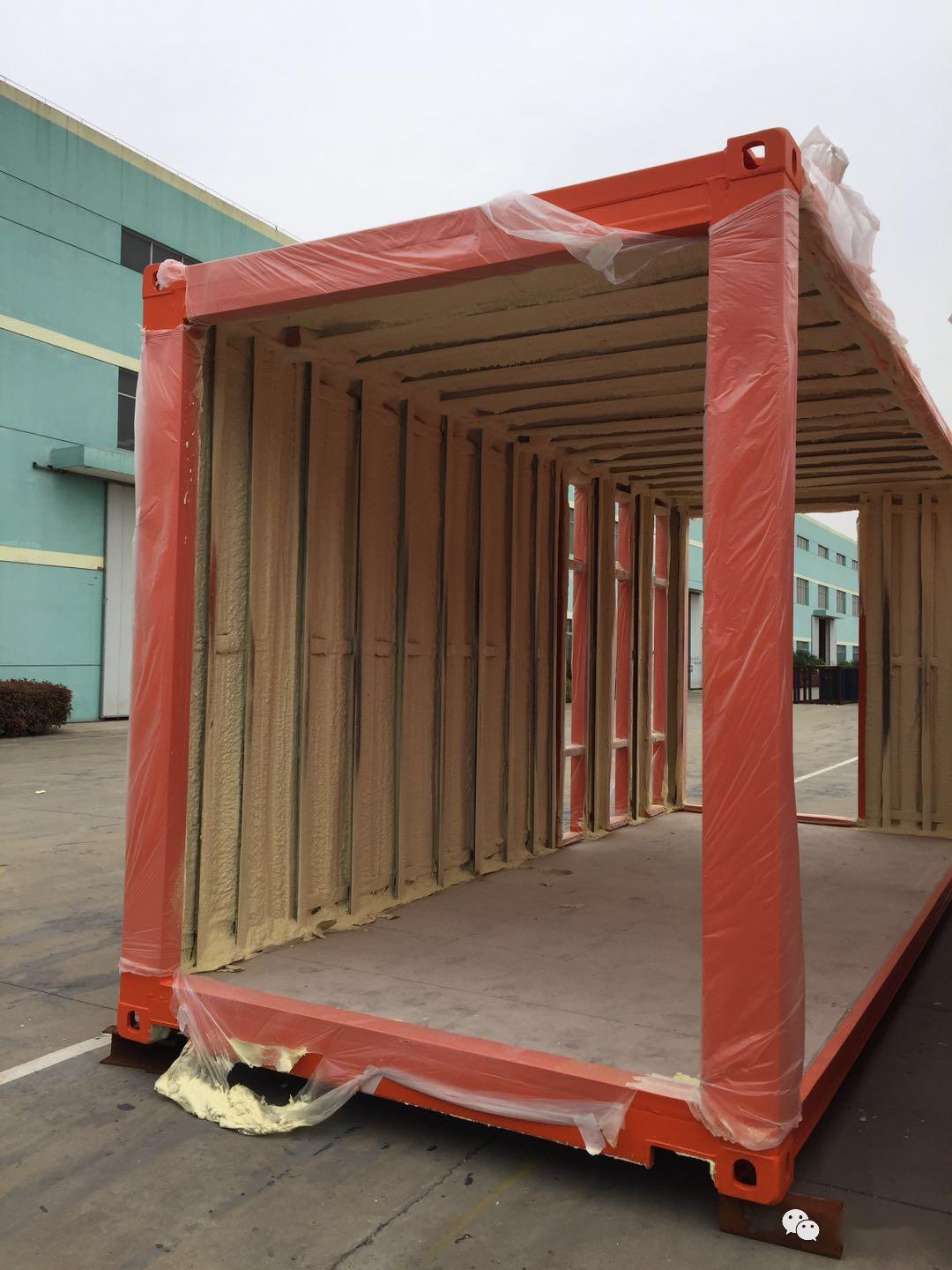 集裝箱保溫隔音處理,一般是 集裝箱內(nèi)部噴涂聚氨酯泡沫,加裝50-100mm的玻璃巖棉板,以用來防潮防腐,隔熱隔音。南方室內(nèi)加裝空調(diào)、北方則加裝地暖等;外層覆裝飾材料,比如歐松板、石膏板、水泥纖維板、高分子裝配板等。